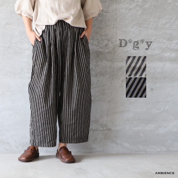 DGY ディージーワイ d*g*y C/E/LストライプワイドパンツMサイズ メール便対応 コットンポリエステルリネン