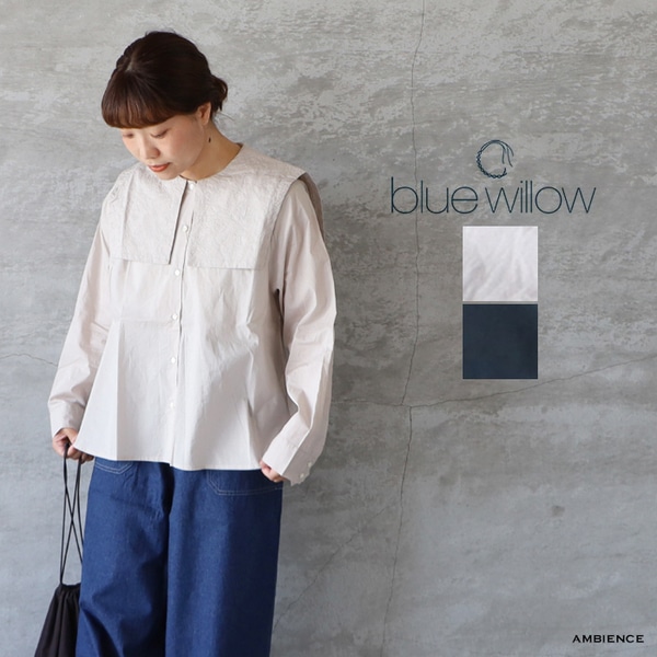 blue willow ブルーウィロウ コットン細番手部分刺繍セーラーブラウス メール便対応 25春夏