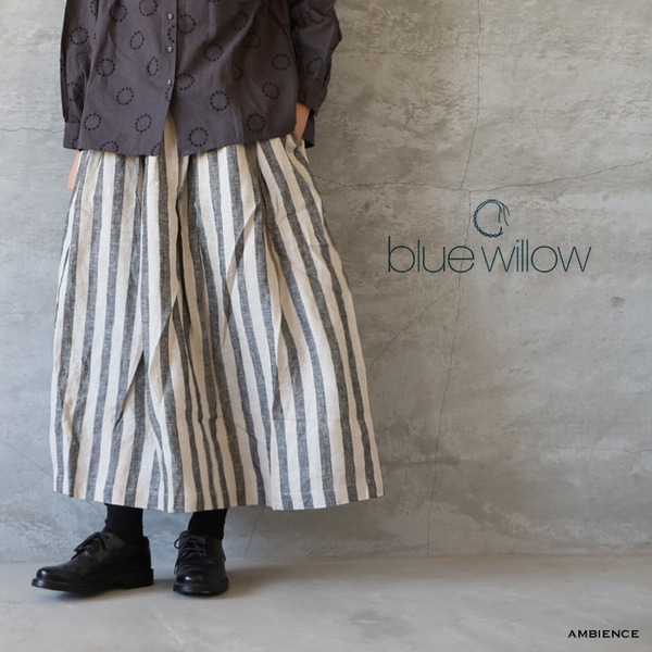 blue willow ブルーウィロウ リネンストライプタックスカート ゆうパック発送 綿麻 25秋冬