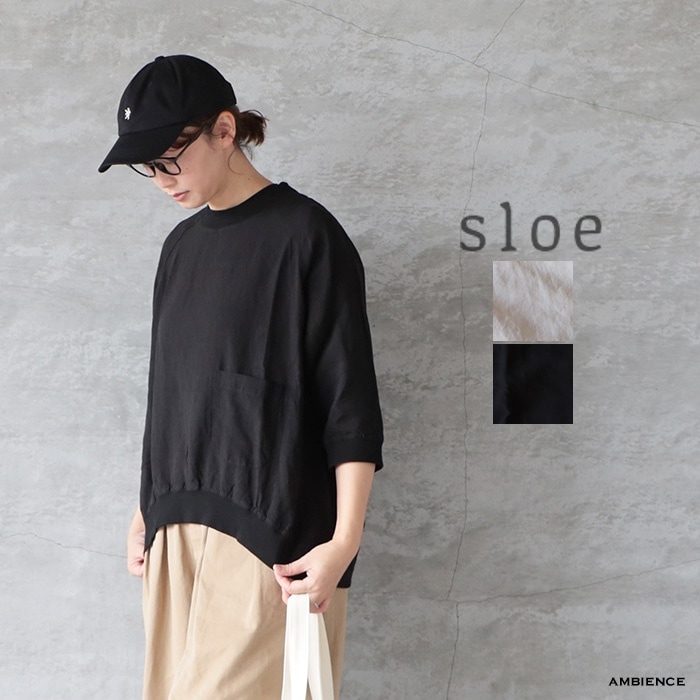 sloe スロウ 麻テンセル衿リブパッチポケット7分袖プルオーバーシャツ