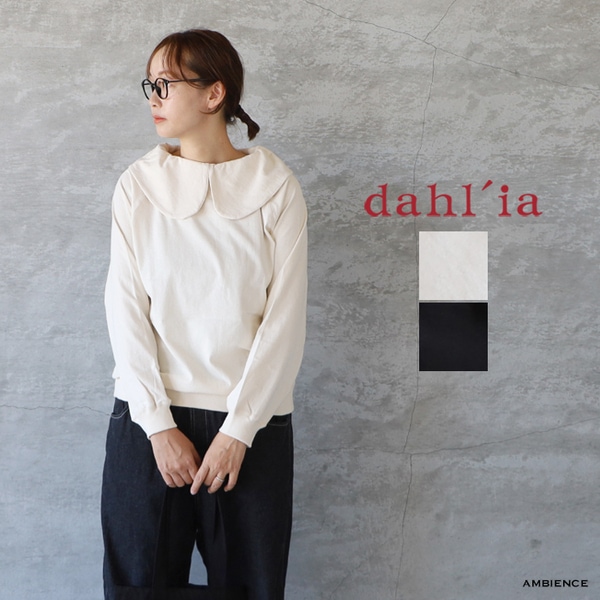 dahl'ia ダリア ビッグカラー コットン天竺プルオーバー ゆうパック発送 24秋冬 日本製 アイボリー ブラック