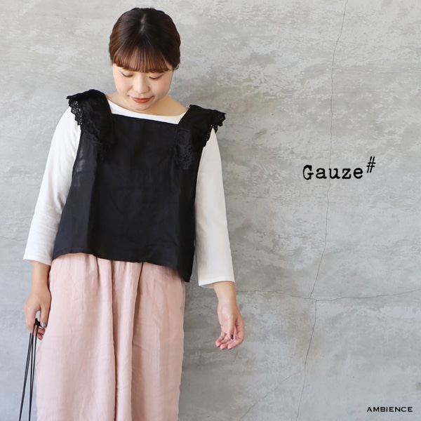 Gauze# ガーゼ G1080 Jouet ノースリーブレースブラウス NOIR メール便対応 日本製 25春夏