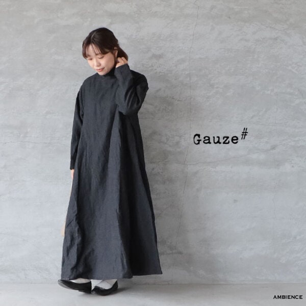 Gauze# ガーゼ G1142 ウールロールネックワンピース ゆうパック発送 ブラック 日本製 25AW