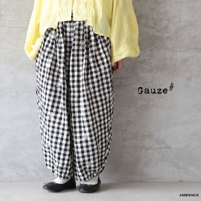Gauze# ガーゼ G1148 エンブロイダリーギンガムameriパンツ ブラック ギンガムチェック ゆうパック発送 日本製 26春夏