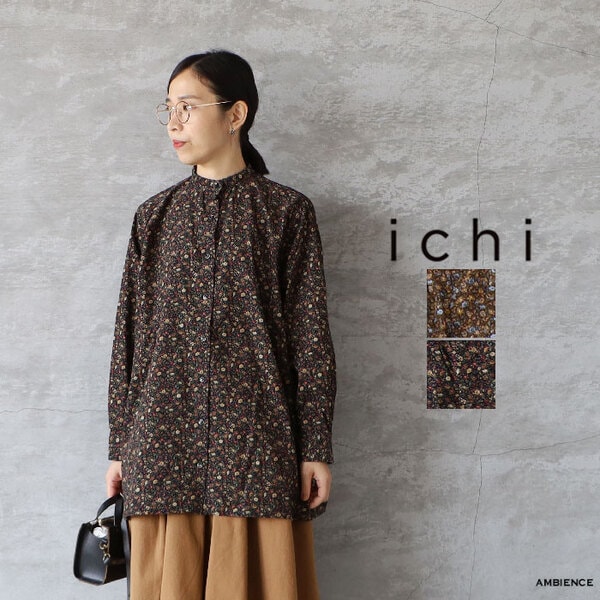 ichi イチ コーデュロイ フラワーシャツ メール便対応 日本製 25AW 花柄 ブラウン ネイビー