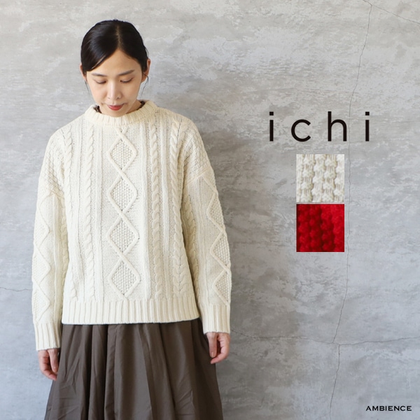 ICHI イチ シェトランドウールケーブル編みニットプルオーバー ゆうパック発送 25秋冬 セーター
