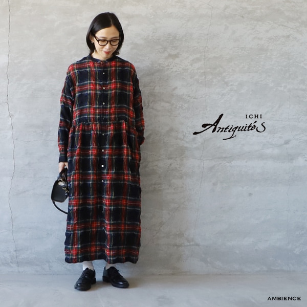 ICHI Antiquite's イチアンティークス コットンウールチェックワンピース ゆうパック発送 日本製 25秋冬