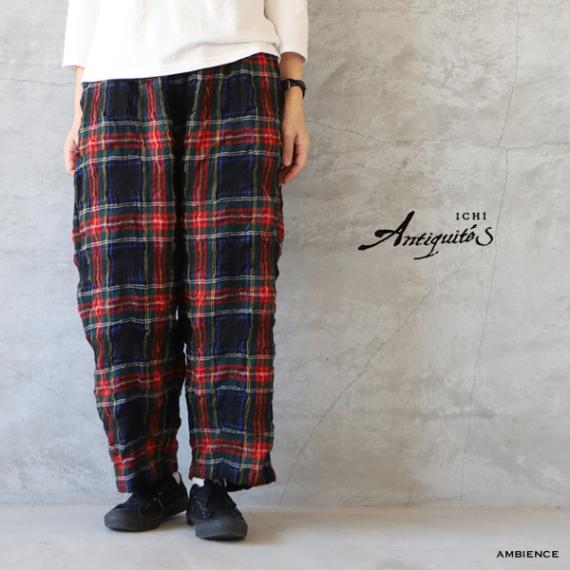 ICHI Antiquite's イチアンティークス コットンウールチェックイージーパンツ ゆうパック発送 日本製 25秋冬