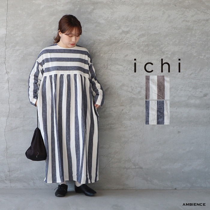 ichi イチ コットンリネンボーダー切替フレアワンピース ゆうパック発送 26春夏