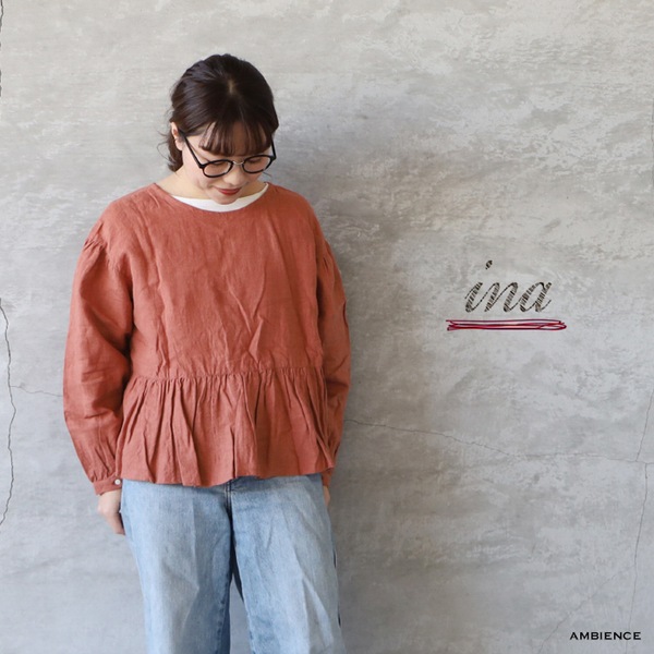 ina イナ リネン切替ギャザー2wayリボンブラウス メール便対応 オレンジ 日本製 c-c