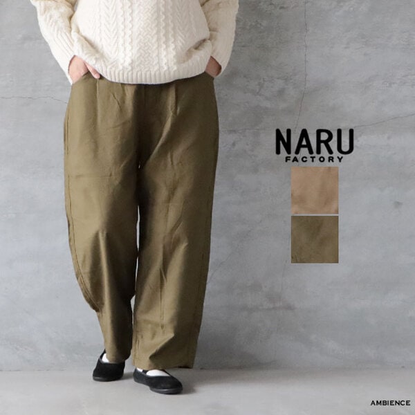 NARU ナル カツラギノッポパンツ メール便対応 ベージュ グリーン ワイドパンツ 日本製