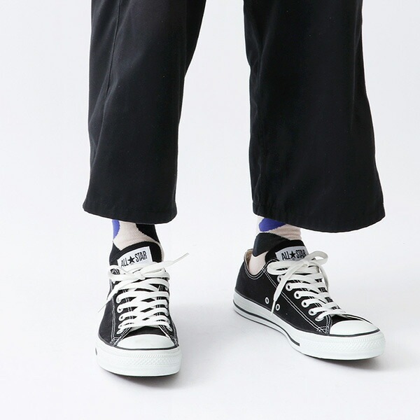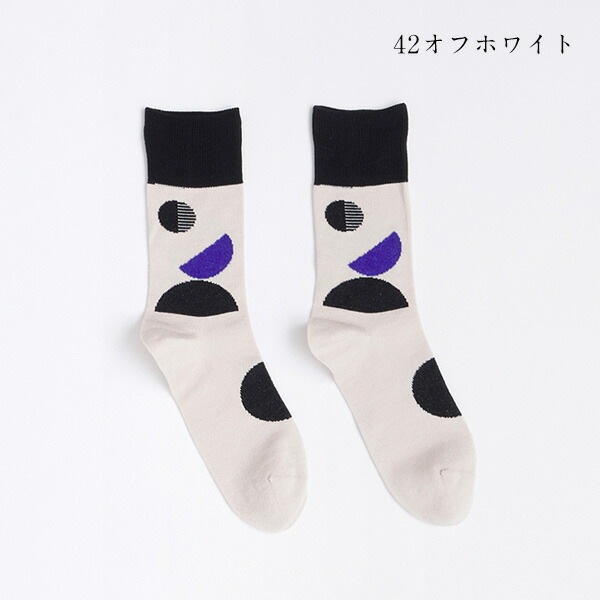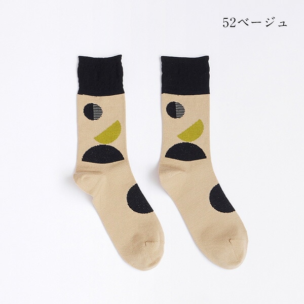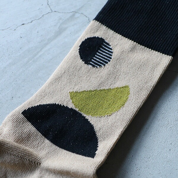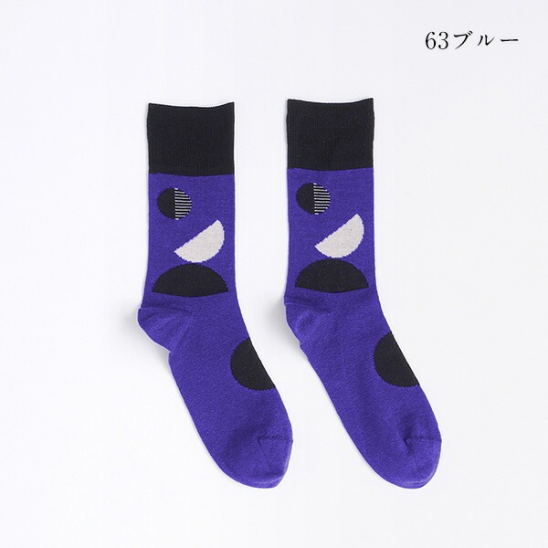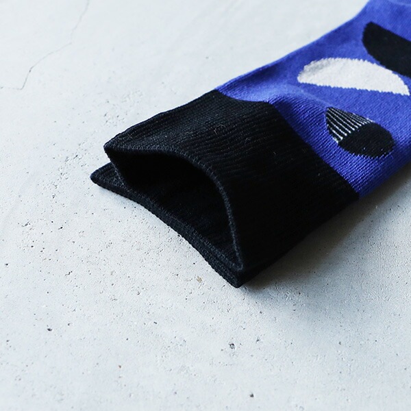 左右で違う幾何学柄モチーフを大胆に配置したソックス。
