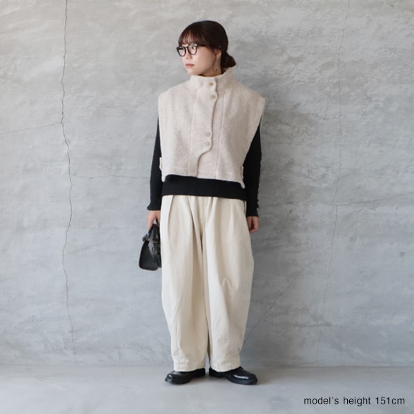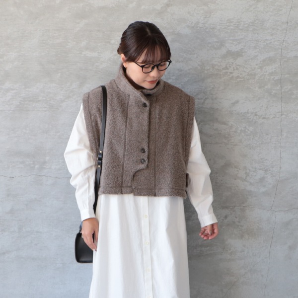 ポコポコと凹凸のある表情が暖かみのある、パイルベスト。