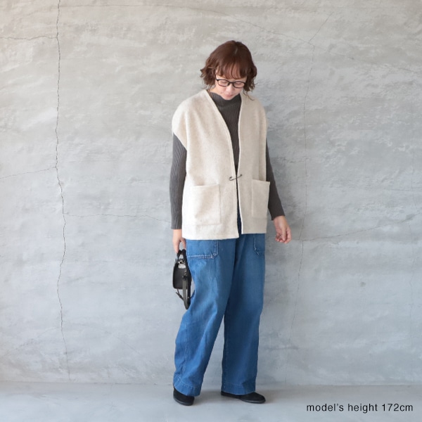ウール混の軽やかな着心地のパネルベスト。