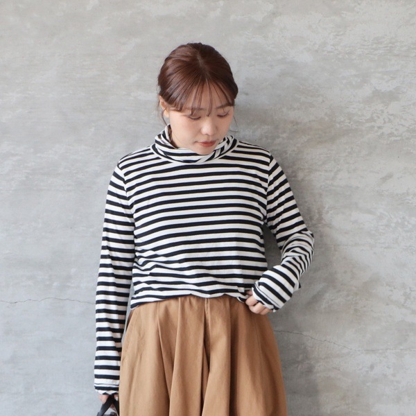 コットンツイストタートルプルオーバー ボーダー