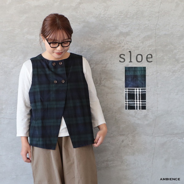 sloe スロウ 先染めチェックWボタン2wayベスト メール便対応 25秋冬