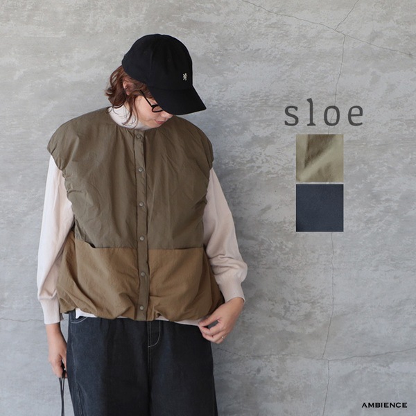 sloe スロウ 異素材切替えドロップショルダー中綿バルーンベスト ゆうパック発送 25秋冬