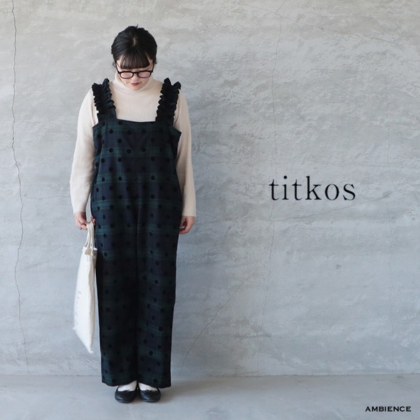 Titkos ティトコシュ フリルショルダードットウールサロペット 日本製 チェック ゆうパック発送