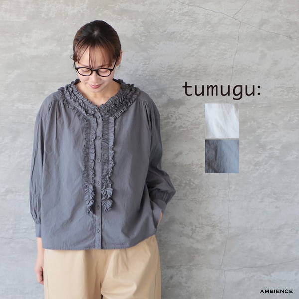 tumugu: ツムグ コットンフリルブラウス 無地 メール便対応 26春夏