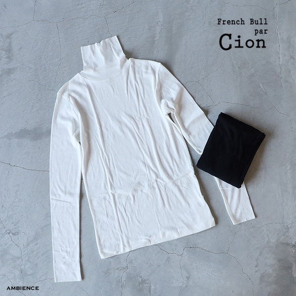 Frenchbull par cion シオン コットンライトハイネックカットソー レディース ホワイト ブラック 日本製 メール便対応