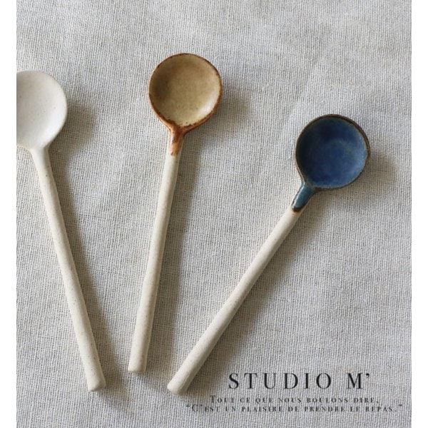 studio m' スタジオエム/スタジオM 陶器の豆スプーン キャメル インディゴ ブラン メール不可 ティースプーン日本製