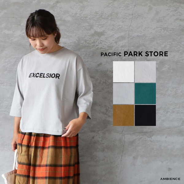 PACIFIC PARK STORE パシフィックパークストア 17/-BD天竺七分袖プリントTee EXCELSIOR メール便発送 25秋冬 日本製 Tシャツ カットソー ic-de
