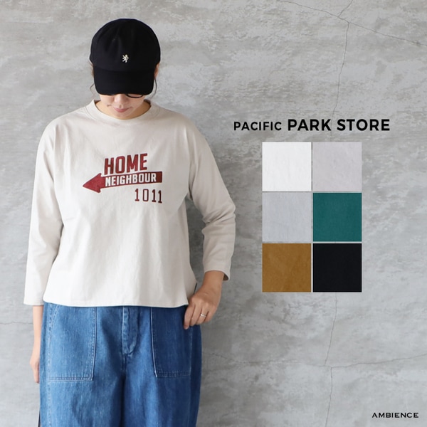 PACIFIC PARK STORE パシフィックパークストア 17/-BD天竺ヘムラウンドプリントTee HOME メール便発送 25秋冬 日本製 Tシャツ カットソー ic-de