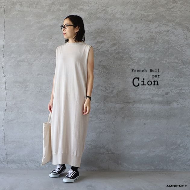 Frenchbull par cion シオン コットンニットノースリーブワンピース ゆうパック発送 レディース ライトグレー ブラック 日本製