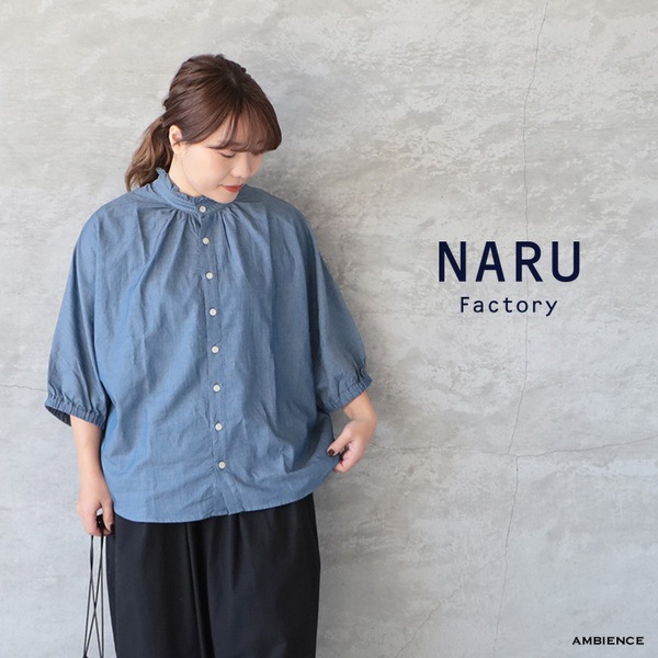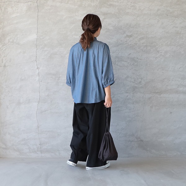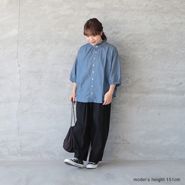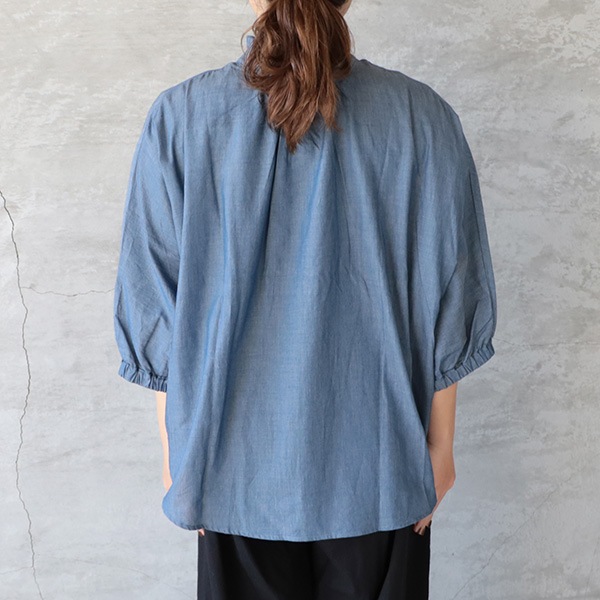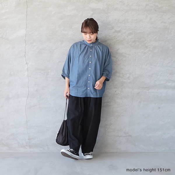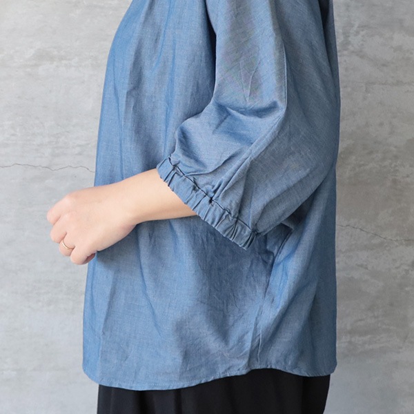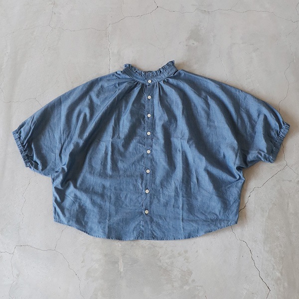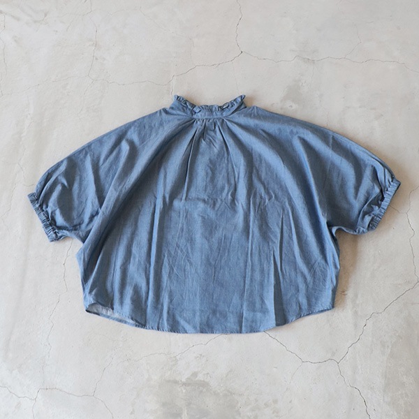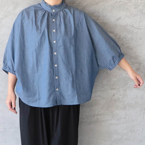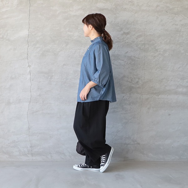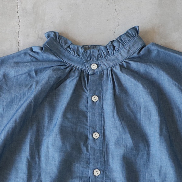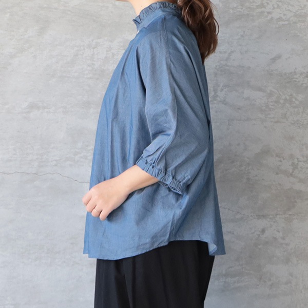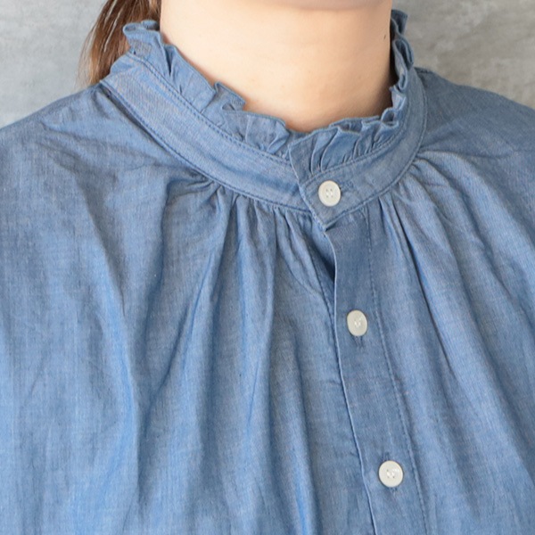 2.25ozデニムターキーシャツフリルネックブラウス