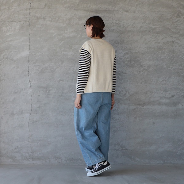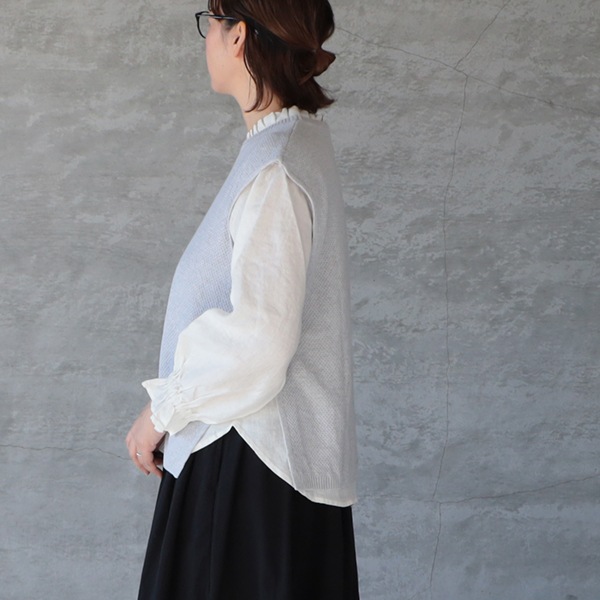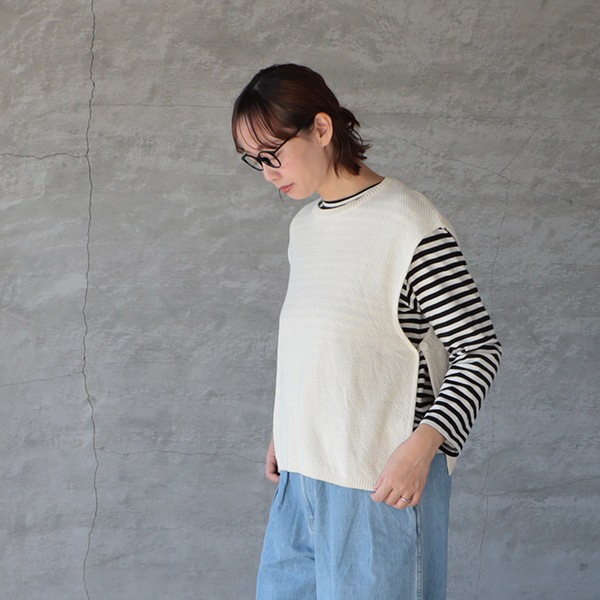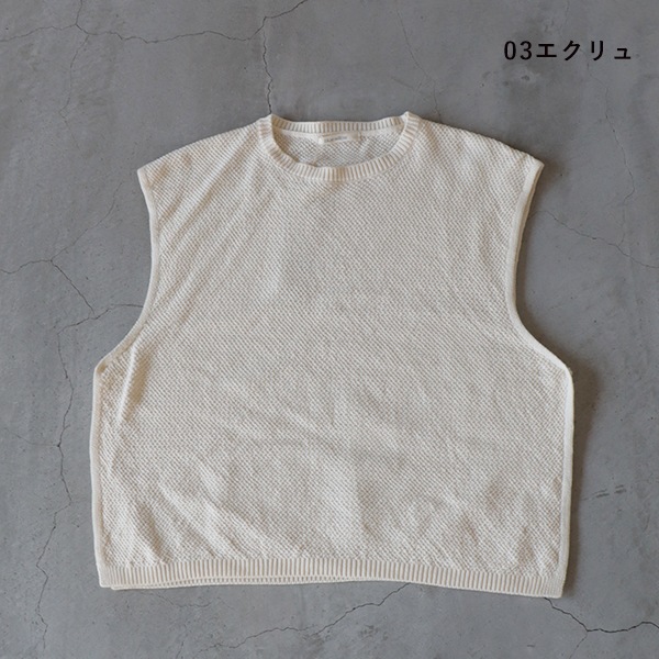 ほんのり表情のあるコットンカノコ編みベスト。